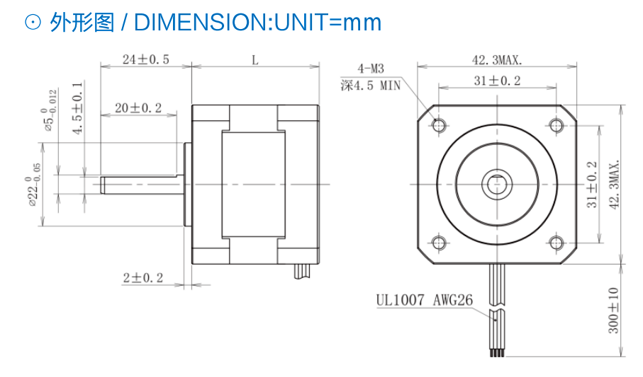 兩相步進(jìn)電機(jī)-42外形圖
